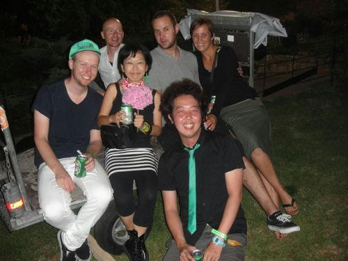 kitsuneのDJがまわしていて、ものすごいカッコいい。ビール飲みつつ体を揺らす。何度かお客さんに「さっきのライブ最高だったよ!」なんて声をかけられる。目の前にいた金髪の女性を可愛いな、と思って見ていたら「写真一緒に撮ってもいいですか?」なんて言われたりもする。夜中3時も過ぎて眠くなり、一番前の柵に寄っかかってウトウトしていると、何か冷たいものが顔に当たる。そちらを見ると、また別の女性がビールを指で飛ばしながら、寝ちゃダメよ、という感じで微笑んでいたり。
