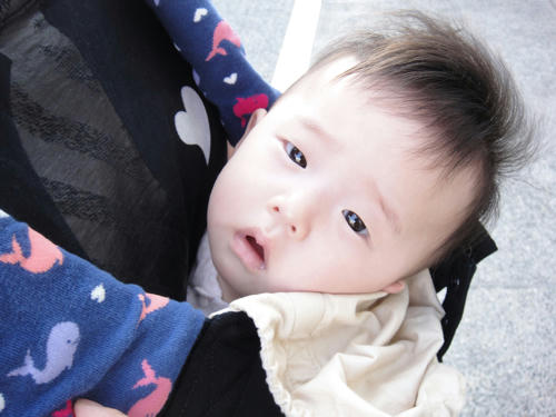 「こんな暑いのになんで外出るの?」と言いたげな娘。