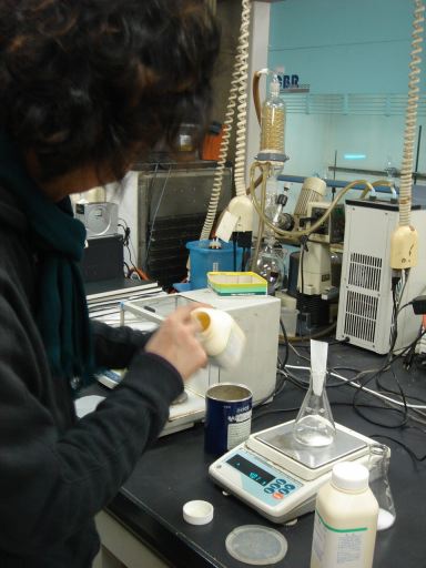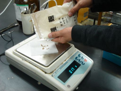三種類の物質を計り、水と混ぜる。