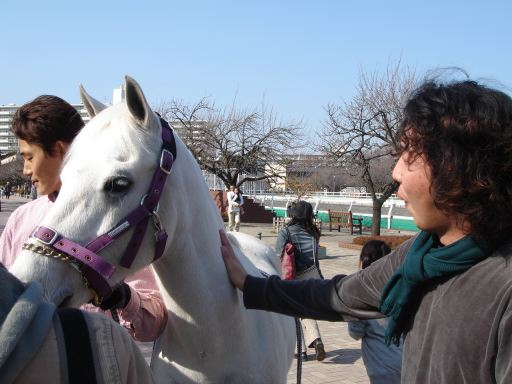 馬に触る。