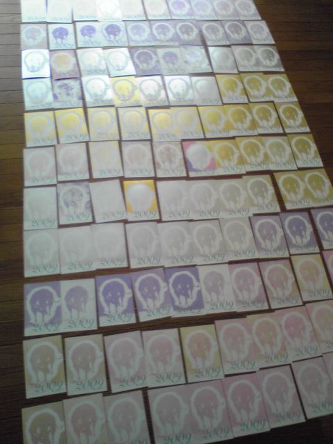 ゴム版と彫刻刀買ってきて、一人で全部刷ってました。楽しー!とか言ってました。