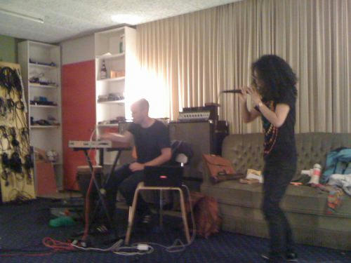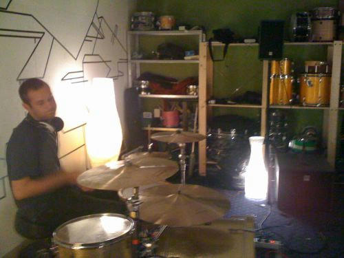 リハスタはとある高校の施設だよ、と聞いていたので、どんなんだろう?と思っていたら、学校のグラウンド側地下にあって、間接照明、ソファ、絨毯敷のなんともゴージャスなスタジオ。これを月5000円程度でシェアしているらしい。なんともうらやましい!