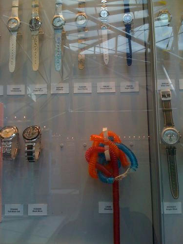 スウォッチのコレクションが年代別に並べられているのですが、すごい量。しかもいろいろ。