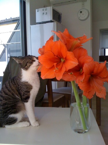 アマリリスがすごく綺麗に咲いたのですが、下のほうは穴だらけ。