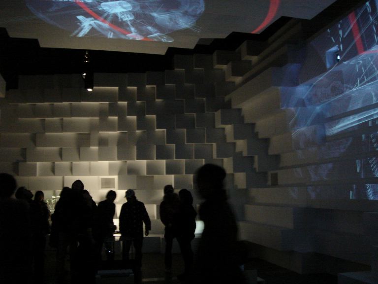リサイクルの発泡スチロールでできた迷宮のような会場。