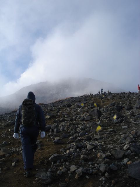 体力的にかなりきついし、同じ方向に向かう登山者がいないので、道が合っているのかどうか心細い。