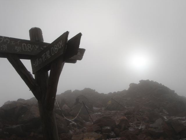 一時間弱かけて、なんとか山頂近くの分岐まで登る。