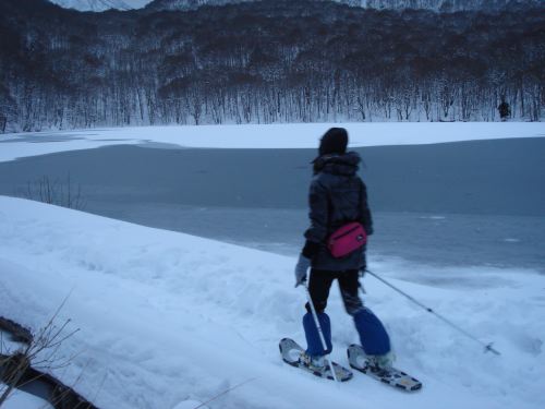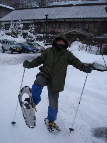スノーシューを履いて近くを散策。