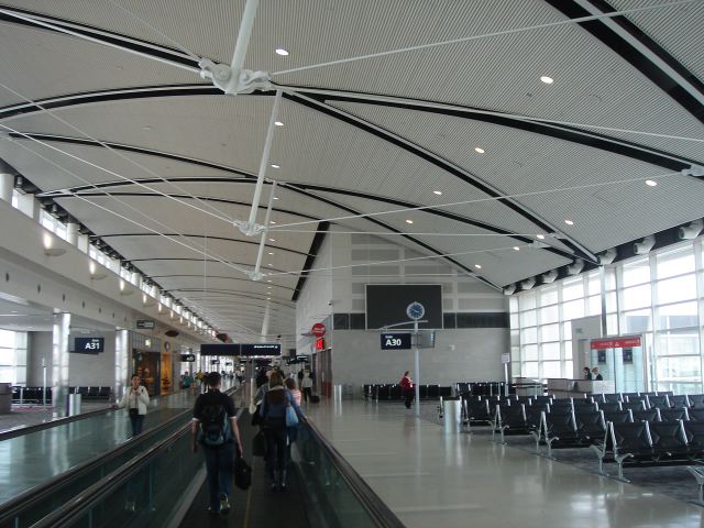 まだ新しい空港らしく、建築がモダン。屋根の構造が面白いです。