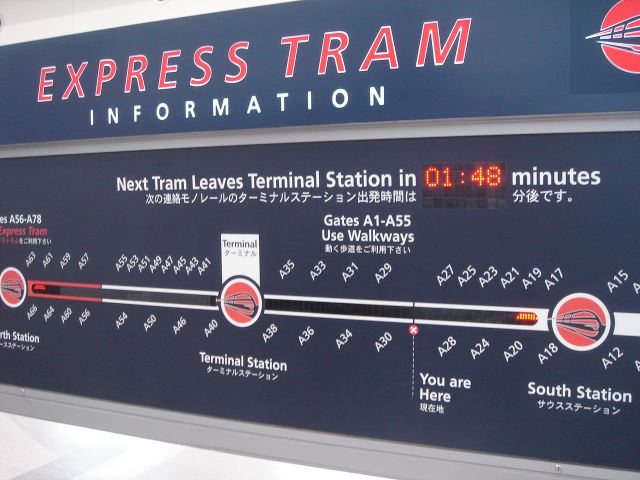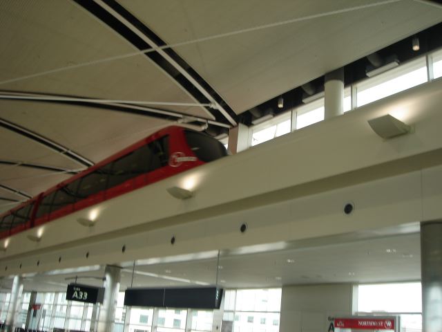 横長のコンコース(1.6km!)の移動になんと電車。