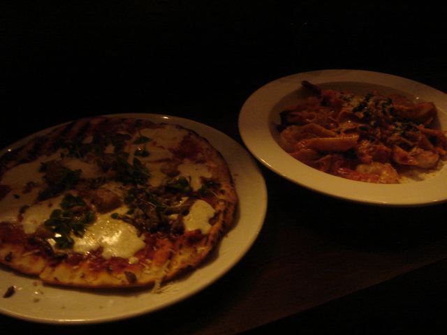 右のペンネに入っていたエビがプリプリで死にそうに。