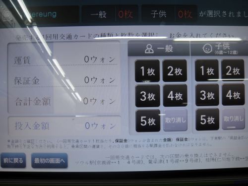 タッチパネル式の自動券売機があって、なんと日本語も対応。(日、中、英、韓に対応。すごい。)