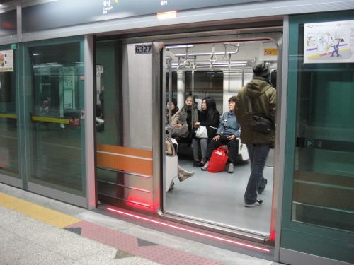 韓国の地下鉄駅は全部ホームドアがありました。
